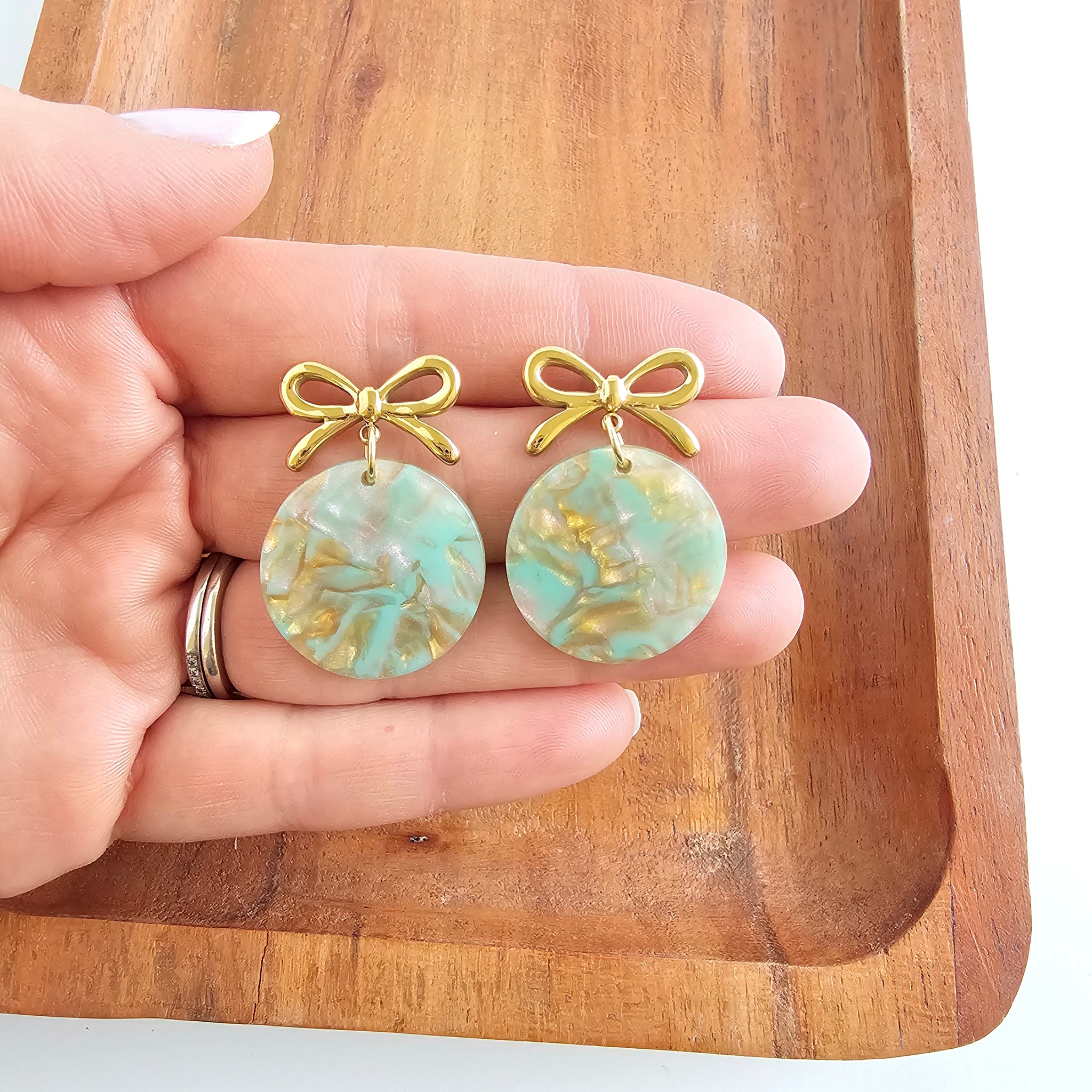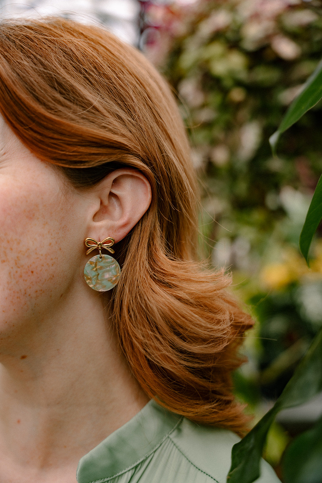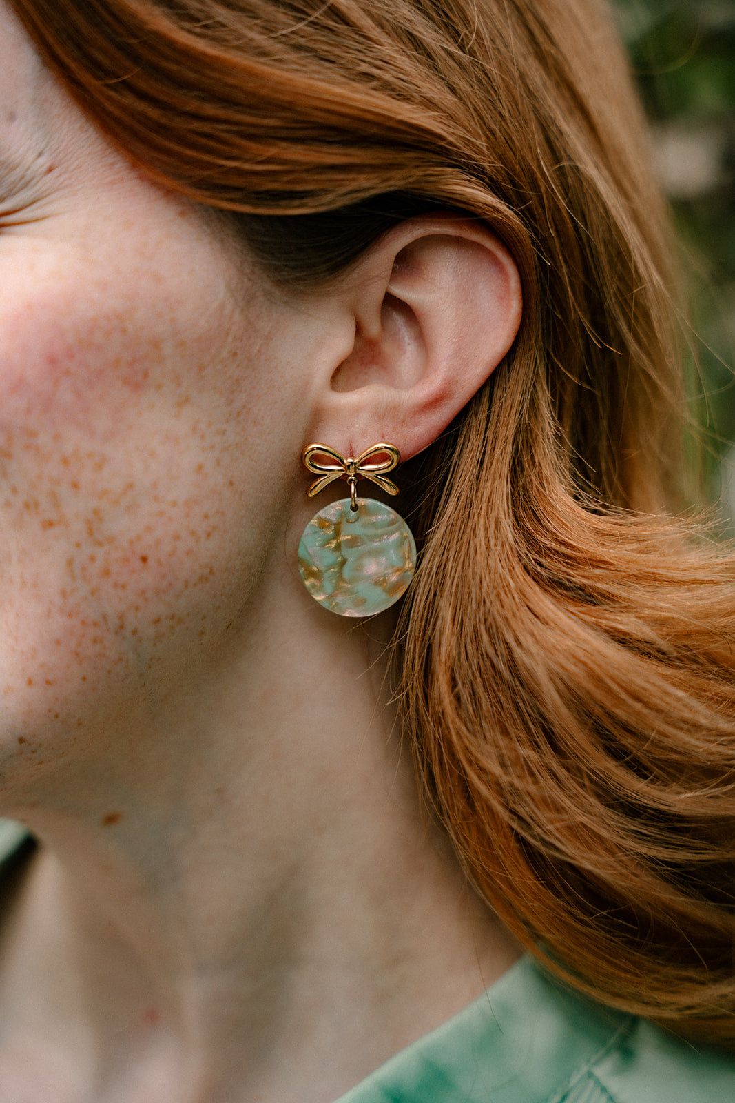 Style Tip: Let the Bailey Earrings be your go-to for a polished, "put-together" vibe. Pair them with a sleeveless shift dress and gold sandals for a summer garden party, or style them with a simple silk cami and white trousers for a dinner out. Their unique blend of colorful acrylic and sweet bow details makes them a versatile favorite for any occasion.