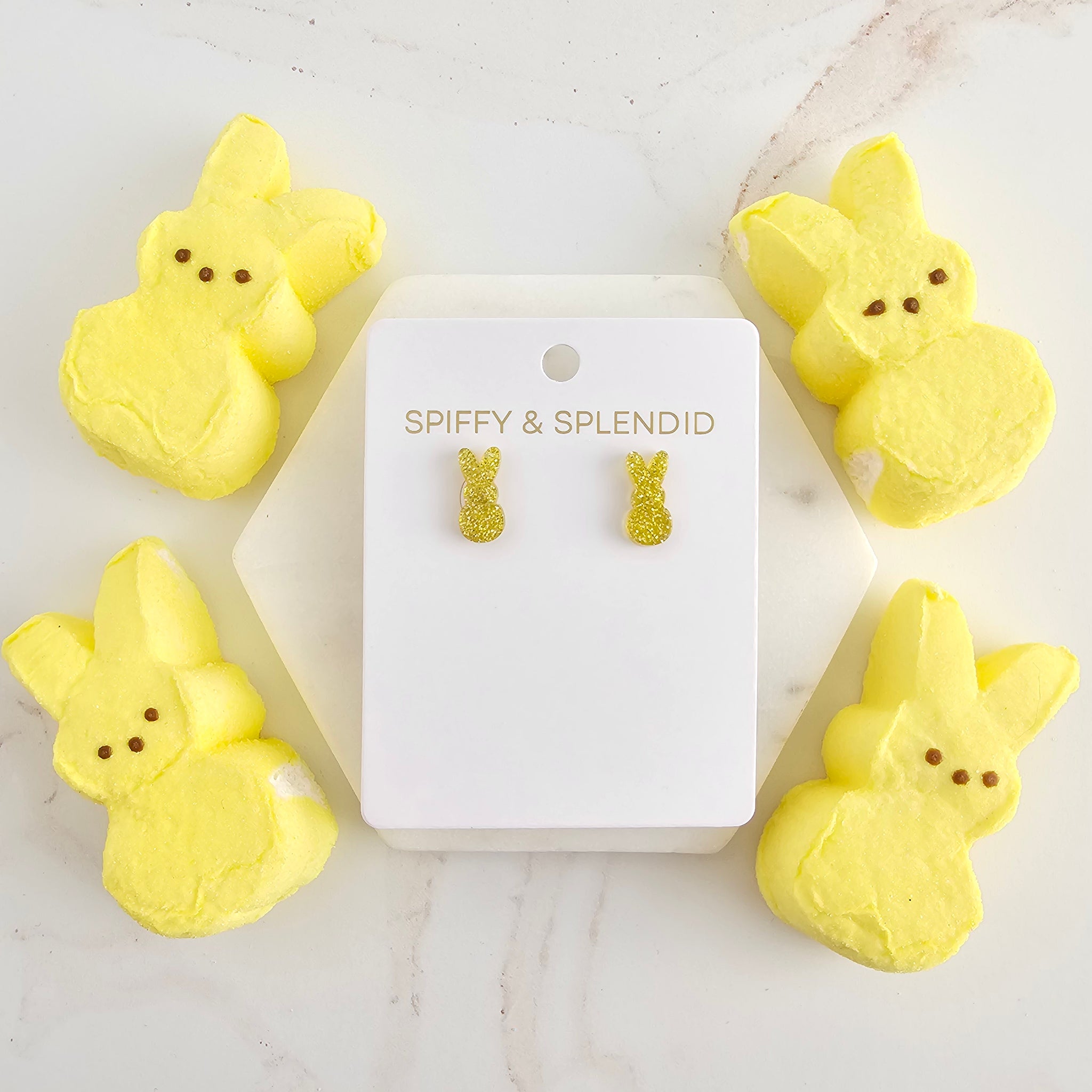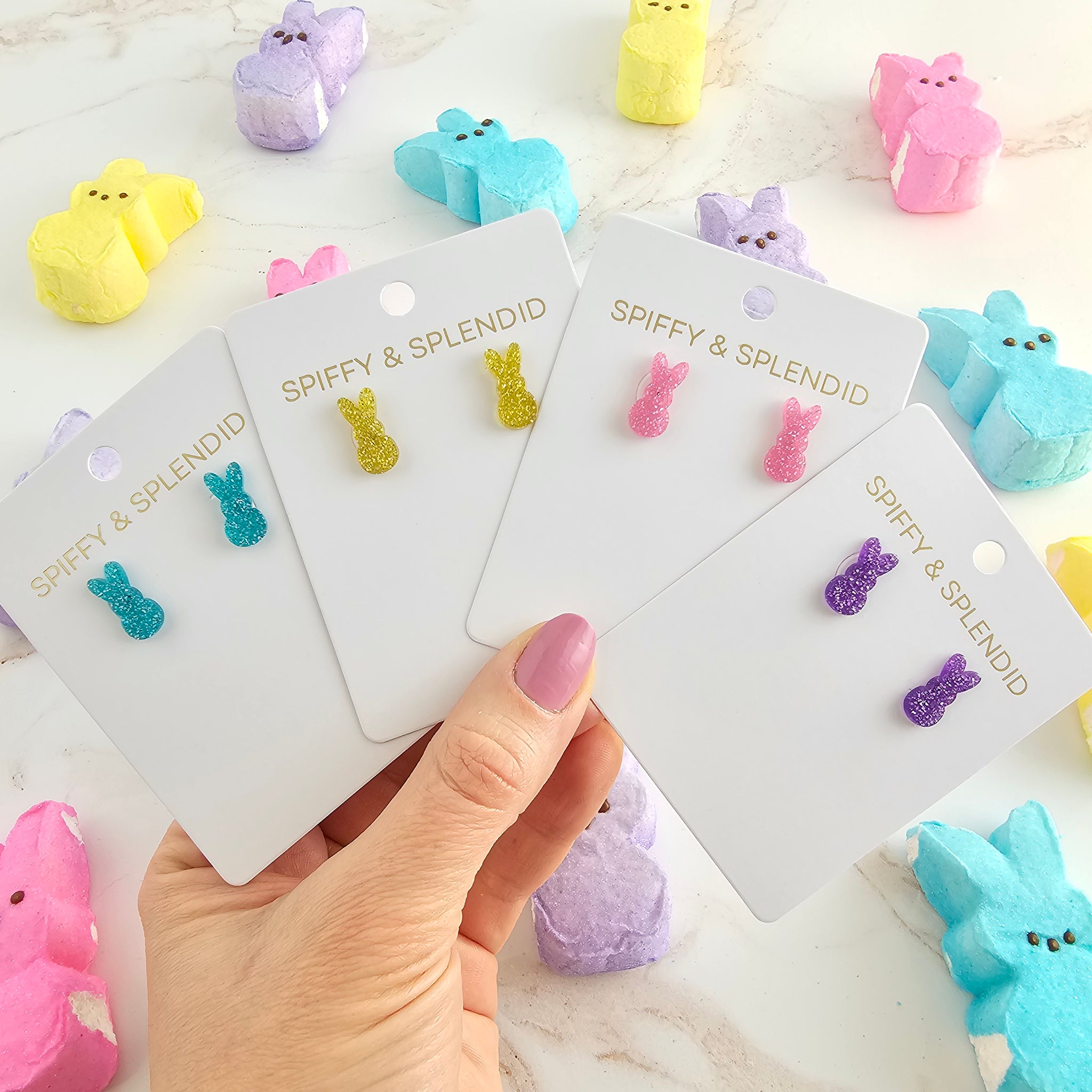 Sparkle bright this Easter with these adorable bunny stud earrings! Made from high-quality, glittery acrylic, they're the sweetest accessory for your springtime wardrobe.